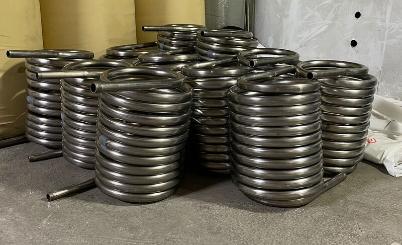 Мы изготавливаем теплообменник только из пищевой нержавеющей трубы AISI304 толщиной 2мм и диаметром 32мм. Тонкостенную гибкую гофру мы в производстве НЕ ИСПОЛЬЗУЕМ.
