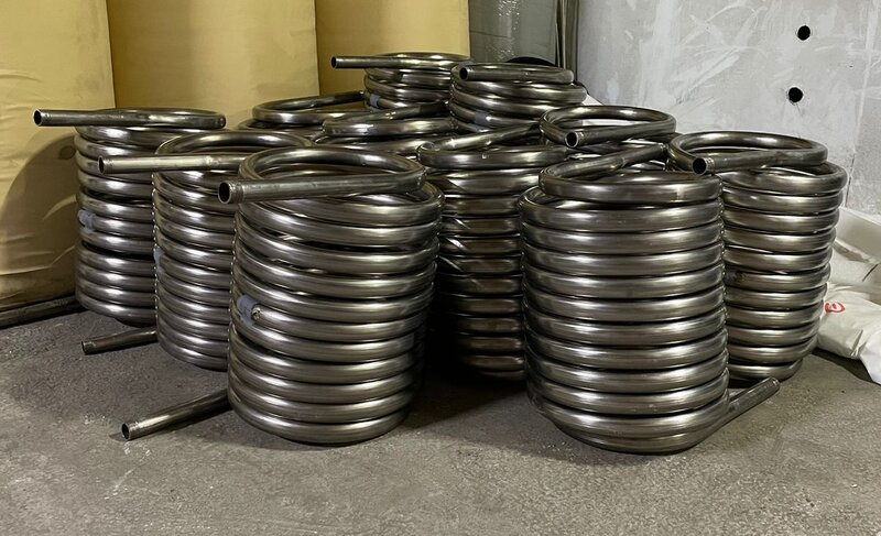 Мы изготавливаем теплообменник только из пищевой нержавеющей трубы AISI304 толщиной 2мм и диаметром 32мм. Тонкостенную гибкую гофру мы в производстве НЕ ИСПОЛЬЗУЕМ.
