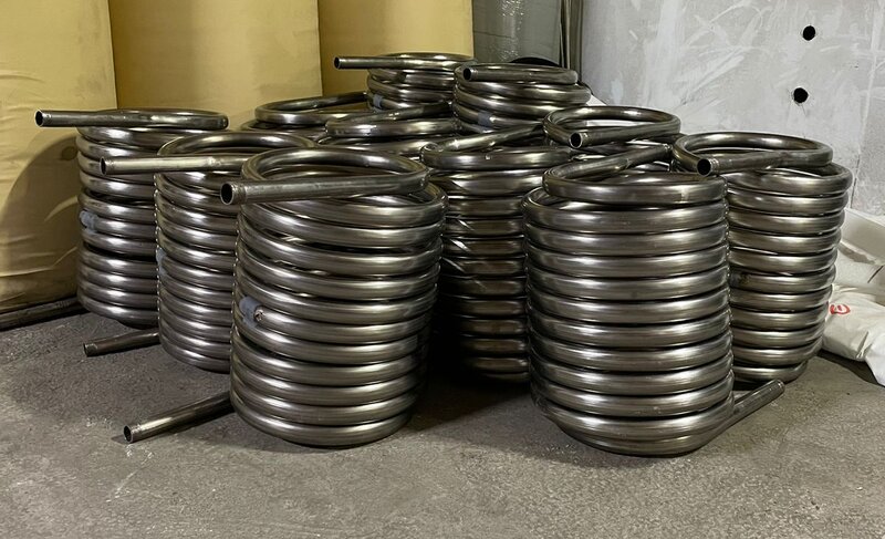 Мы изготавливаем теплообменник только из пищевой нержавеющей трубы AISI304 толщиной 2мм и диаметром 32мм. Тонкостенную гибкую гофру мы в производстве НЕ ИСПОЛЬЗУЕМ.